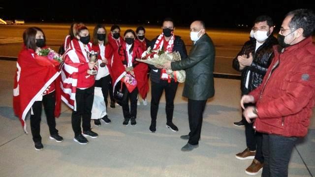 Avrupa şampiyonu özel sporculara havalimanında coşkulu karşılama