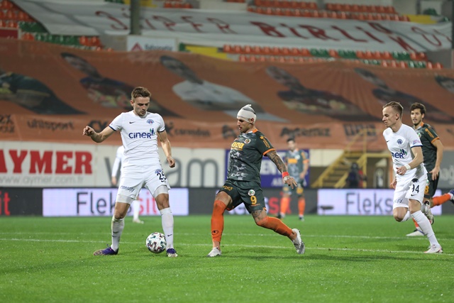 55. dakikada Alanyaspor'dan Fatih Aksoy pası rakip ceza sahası yayı dışına çıkardı. Bakasetas'ın uzaktan sert şutu kaleci Ramazan Köse'den döndü. Dönen topa Bareiro'nun röveşata denemesi üstten dışarı çıktı.