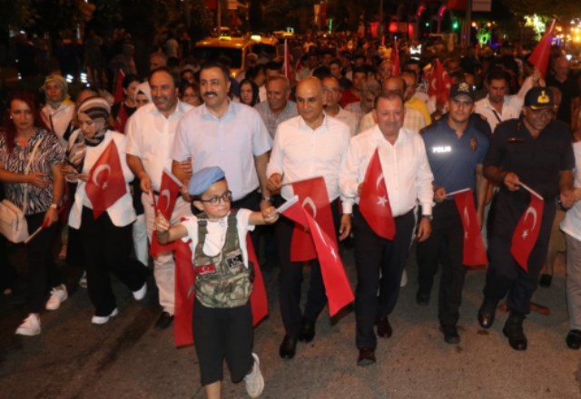 Vatan aşkı taşıyan kahramanlar tarafından hainlerin kirli planının bozulduğunu söyleyen Alanya Kaymakamı Fatih Ürkmezer, “15 Temmuz 2016 gecesi kahraman ordumuza sızmış bir avuç hainin başlattığı darbe girişimine karşı milletimiz vatan aşkı diyerek 7'den 70'e kadını ve erkeği ile yaşlısı ve genciyle tek yürek oldu. Şu anda nasıl ki tüm Türkiye meydanlarda bu anlamlı günü anmak için toplandıysa o gecede milletimiz kendi iradesine ipotek koymak isteyen kökü dışarıda ruhu satılık üzerindeki üniformanın anlamını kavramaktan uzak hainlere karşı da işte böyle meydanları caddeleri köprüleri ve yolları doldurmuştu. Yüreğinde vatan sevgisi ve bağımsızlık aşkı taşıyan, meydanları dolduran kahramanlarımız sayesinde hainlerin kafalarında yaptığı kirli hesap bozulmuş ve büyük Türk milleti tarihinde hep yaptığı gibi bir destan yazarak canı pahasına bu planı engellemiştir” diye konuştu. Anma programı lise öğrencileri tarafından şiir ve İstiklal Marşı okunarak sonlandı.
