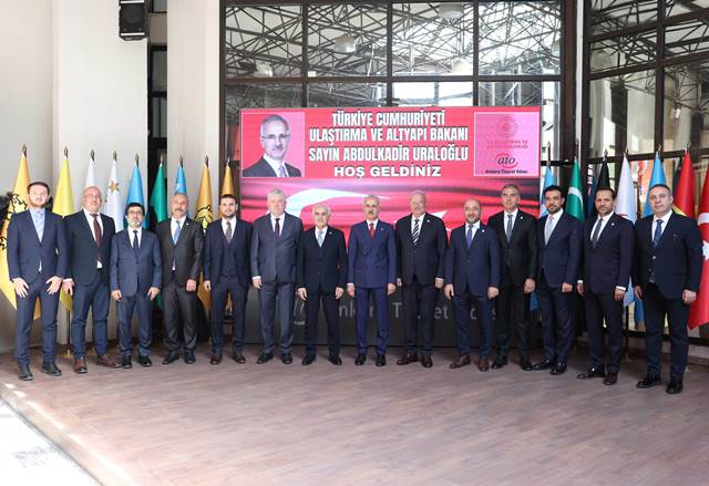 ATO’yu ziyaretinde Bakan Uraloğlu’na, Altyapı Yatırımları Genel Müdürü Yalçın Eyigün, Ulaştırma Hizmetleri Düzenleme Genel Müdürü Murat Baştor, TCDD Genel Müdür Yardımcısı Mahmut Civan, Sivil Havacılık Genel Müdürlüğü Hava Ulaştırma Daire Başkanı Mehmet Sefa Ceyhan, Strateji Geliştirme Başkanı Mücahit Arman, Özel Kalem Müdürü Semih Karaca ve Bakan Danışmanı Musa Saka eşlik ederken, ATO Meclis Başkanı Mustafa Deryal, Meclis Başkan Yardımcısı Ali İhsan Özdemir ile Yönetim Kurulu Üyeleri Adem Ali Yılmaz, Ali Yıldız, Ahmet Akça, Ali İhsan Güçlü, Halil İlik ve Yasin Özyolu da görüşmede yer aldı.