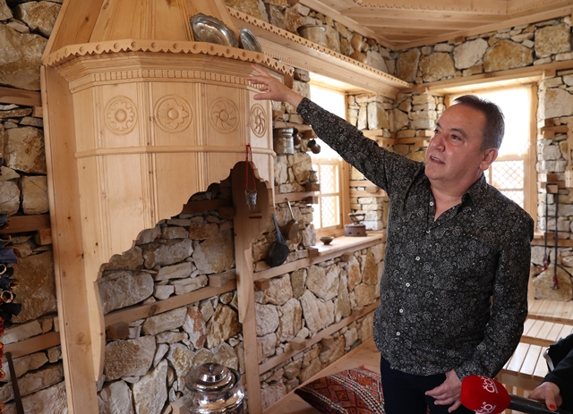 EXPO 2021 Hatay’ın açılış törenine katılmak üzere Hatay’a giden Antalya Büyükşehir Belediye Başkanı Muhittin Böcek, Antalya bahçesinde inceleme yaptı. Başkan Böcek, Antalya Büyükşehir Belediyesi tarafından Akseki ve İbradı yörelerinin özgün mimari yapısına uygun olarak inşa edilen Düğmeli Ev’i gezerek, Büyükşehir Belediyesi bürokratlarından çalışmalar hakkında bilgi aldı. Böcek, açılış için Hatay’da bulunan Akseki ve İbradılı muhtarları Düğmeli Ev’de misafir etti. Muhtarlar yörelerine ait Düğmeli Ev’e tam not verdi.