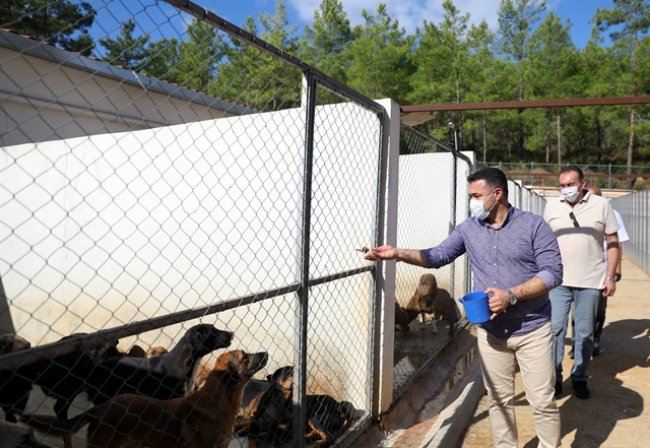 Alanya Belediye Başkanı Adem Murat Yücel, 4 Ekim Hayvanları Koruma Günü kapsamında Demirtaş’ta bulunan Alanya Belediyesi Geçici Hayvan Bakımevi ve Rehabilitasyon Merkezi’ni ziyaret etti. Alanya Belediyesi Veteriner İşleri Müdürü Saim Kanlı ile birlikte tesisi gezen Başkan Yücel, barınakta bulunan hayvanlara yem vermeyi de ihmal etmedi. Barınakta bulunan 557 köpek, 50 kedi, 2 martı ve 1 kartalın bakım ve ihtiyaçlarının karşılanabilmesi adına ellerinden gelen desteği sağladıklarını belirten Başkan Yücel, hayırseverler ve hayvanseverlerden mama yardımı talebinde bulundu.