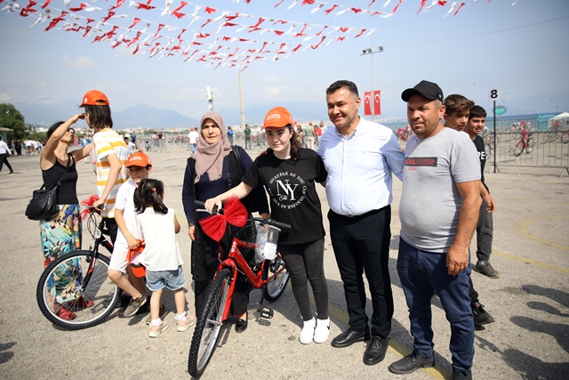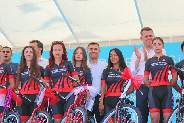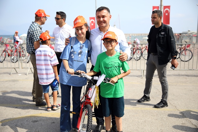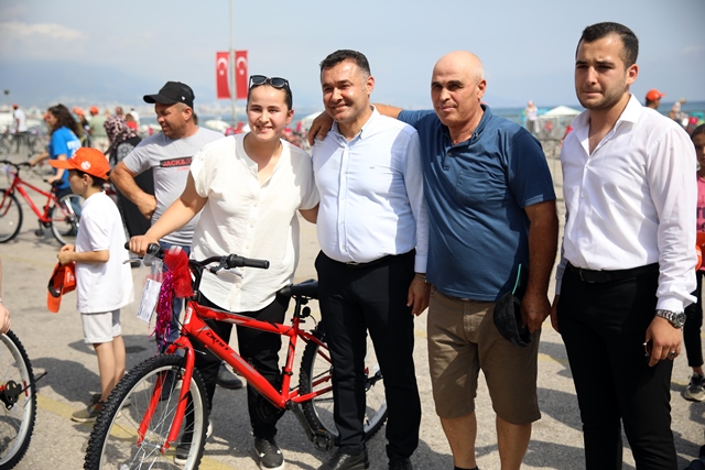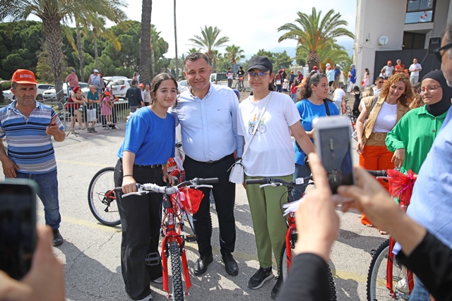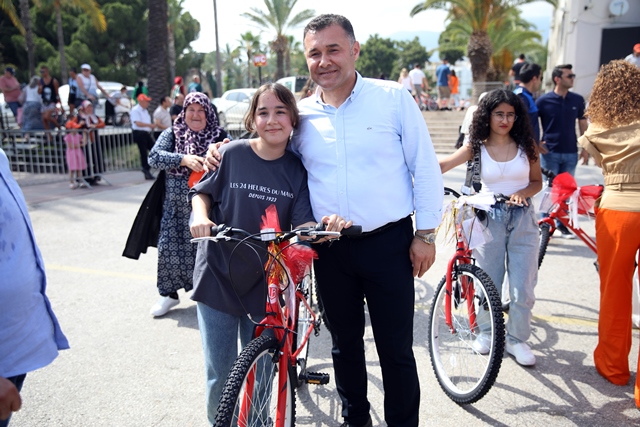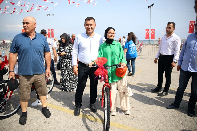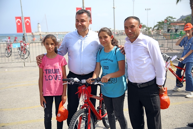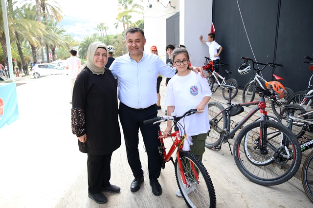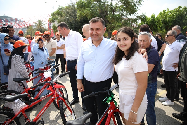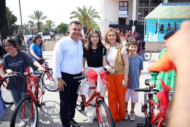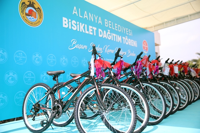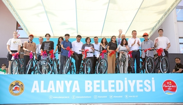“Alanya Belediyesi olarak kent trafiğini rahatlatmak, çevre kirliliğini azaltmak ve doğa ile en uyumlu taşıt olan bisiklet kullanımını yaygınlaştırmak için sizlerin başarısını bisiklet hediyesi ile ödüllendirmek istedik” diyen Başkan Yücel, “Göreve geldiğim günden bu güne hem şehir içi, hem de tüm sahil bandında bisiklet yollarını yaygınlaştırmak amacıyla 30 kilometreden fazla bisiklet yolu yaparak hizmete açtık. Alanya’yı nasıl festivaller şehri yaptıysak, Alanya’yı nasıl sporun başkenti yaptıysak, Alanya’yı bisiklet şehri yapacağız. İnşallah sizler de hediyemiz olan bisikleti, bisiklet yollarımızda güvenle sağlıkla kullanırsınız” diye konuştu.