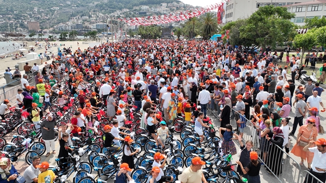 Türkiye Bisiklet Federasyonu Genel Başkanı Emin Müftüoğlu da, “Bugün çok mutluyum, ben de ilk bisikletimi orta ikinci sınıfta takdirname aldığım zaman dedem hediye etmişti. O günü hala hatırlıyorum. Başkanımıza ve Kaymakamımıza teşekkür ediyorum, bu kadar okul birincisini, başarılı öğrenciyi hiç unutamayacakları bir anıya şahitlik ettirdiler. Belediye Başkanımız da bisiklet yollarıyla kente, ekonomiye büyük katkı sağladı. Bugün belediyemizin destekleriyle bu 3 bin bisikletten birini alan çocuklarımızın olimpiyatlarda da yerini alacağına inanıyorum. Alanya bir bisiklet şehri ve gelecekte de dünyanın en yaşanabilir şehri olacaktır” dedi.