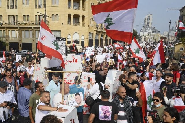 Bazı protestocular ellerini kırmızıya boyarken, bazıları ellerinde patlamada hayatını kaybedenlerin fotoğraflarını ve temsili tabutlar taşıdı. Protestocular, Lübnan Adalet Bakanlığı'ndan Beyrut Limanı'na ardından Beyrut'un merkezinde bulunan parlamentoya yürüdü.