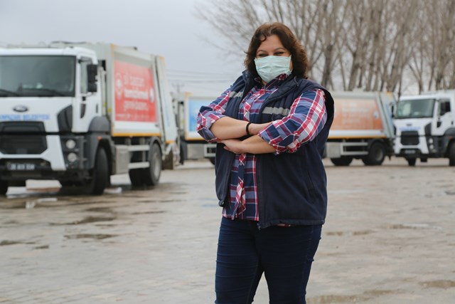 7 yıldır Odunpazarı Belediyesi'nde çalışan 43 yaşındaki Aysun Tabak, 5 yıldır çöp kamyonu kullanıyor. Çöp kamyonu kullanmanın zor olmadığını belirten Tabak, “Hiçbir zorlukla karşılaşmadım. Tabii ki trafikte kadın olduğum için ilk zamanlar görenler sıkıştırmaya falan kalktılar. Şimdilerde herkes bu duruma alıştı. Hiç kimse artık bir kadını yadırgamıyor” dedi.