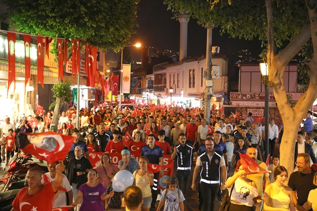 Kutlama etkinlikleri ilk olarak Alanya Belediyesi ve Alanya Kent Konseyi’nin iş birliğinde düzenlenen Fener Alayı Yürüyüşü ile başladı. 19.30’da Alanya Atatürk Anıtı önünde toplanmaya başlayan protokol üyeleri ve vatandaşlar, saat 20.00’de Atatürk Anıtı önünden başlayarak İskele Caddesi boyunca meşaleler, marşlar ve Türk Bayrakları eşliğinde yürüyüş gerçekleştirdiler.