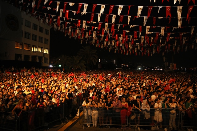 Protokol konuşmalarının ardından sahneye ünlü sanatçı Koray Avcı çıktı. En sevilen şarkılarını Alanyalılar için seslendiren Avcı, Alanyalılara unutulmaz bir zafer gecesi yaşattı. Belediye Binası arkasında toplanan binlerce vatandaş, Koray Avcı’nın seslendirdiği şarkılara eşlik ederken, mest eden havai fişek gösterilerine de tanıklık ettiler. Başkan Yücel, zafer gecesinde sahne alarak Alanyalılara unutulmaz bir gece yaşatan Koray Avcı’ya ipek kozasından yapılmış Türk Bayrağı Tablosu takdim etti.
