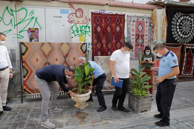 Pandemi önlemleri kapsamında Kaleiçi sokaklarında incelemelerde bulunan zabıta ekiplerine, Büyükşehir Belediyesi Park ve Bahçeler Dairesi, Koruma Uygulama ve Denetim Şube Müdürlüğü ve Fen İşleri Dairesi Başkanlığı’ndan görevli personel de eşlik ederek, olumsuzlukları tespit etti. Sokak kenarlarında bulunan ve yola sarkan bitkilerin budanması, çeşitli nedenlerle deformasyona uğrayan engelli yürüyüş yollarının da onarılması kararlaştırıldı.