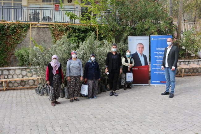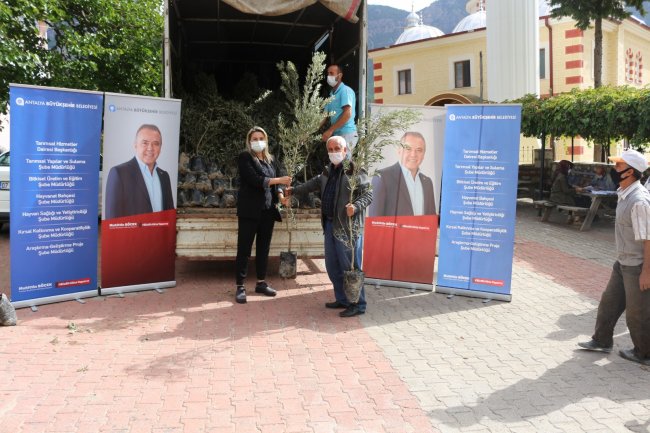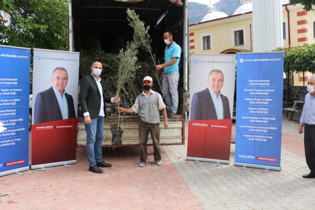 Büyükşehir'in çiftçiye desteği sürüyor İbradı'da zeytin ve defne fidesi dağıtıldı
