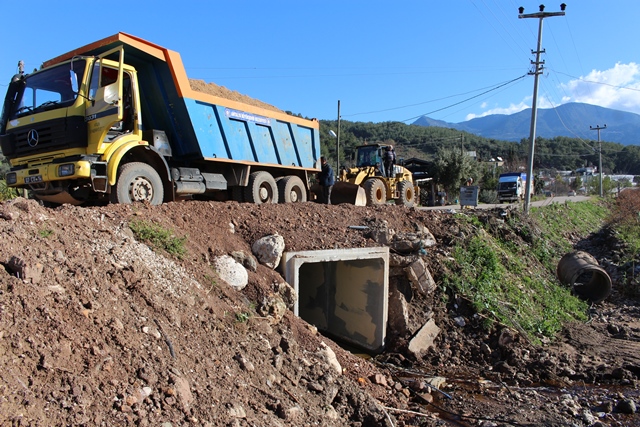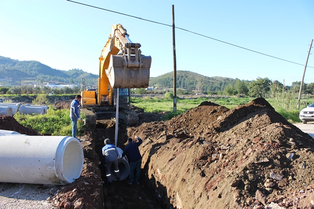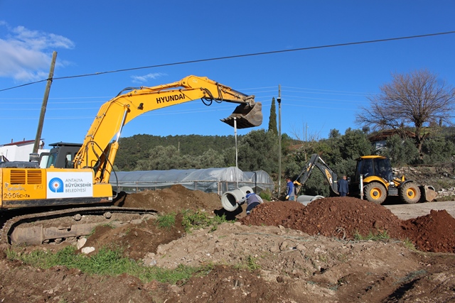 Antalya Büyükşehir Belediyesi şiddetli yağışlar ile birlikte yaşanabilecek sel ve taşkınların önüne geçebilmek amacıyla Kumluca ilçesine bağlı Toptaş Mahallesi’nde yağmursuyu büz döşeme çalışması gerçekleştiriyor.