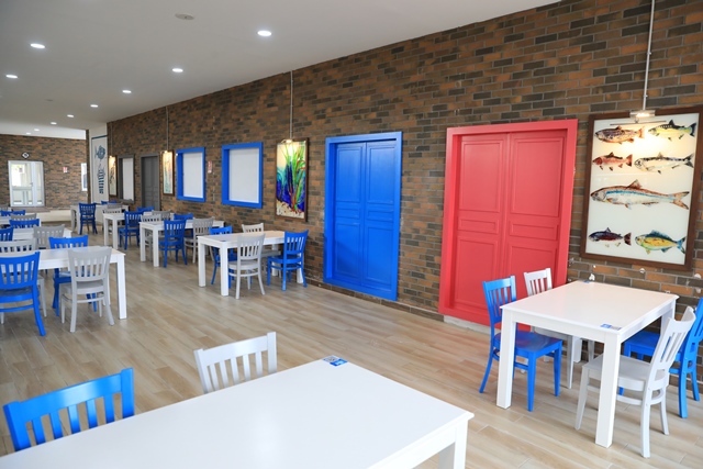Korona virüs önlemleri kapsamında hizmetine ara verdiği sürede yoğun bir tadilat süreci geçiren balık çarşısının bir bölümünde Alaçatı konsepti oluşturdu. Mavi beyazın göz alıcı birlikteliğinin kullanıldığı Düden Balık Çarşısı’na gelen misafirler hijyen kurallarının en üst seviyede tutulduğu, ferah bir ortamda lezzetli deniz ürünlerini tüketebilecek.