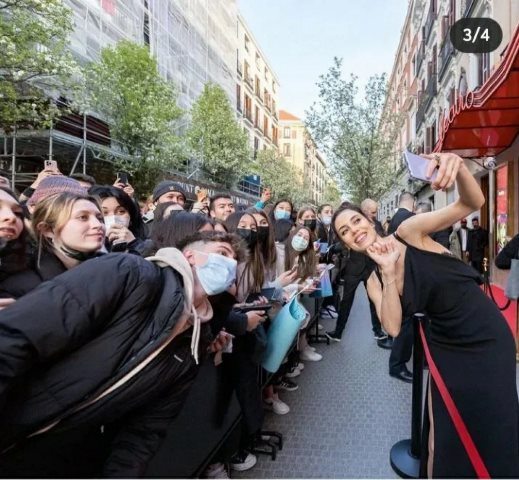 Adı İspanyolca anons edilen Dere, alkış tufanıyla sahneye çıktı. Güzel oyuncu, dünya starlarının ödül aldığı törenden önce hayranlarıyla da fotoğraf çektirmeyi ihmal etmedi.
