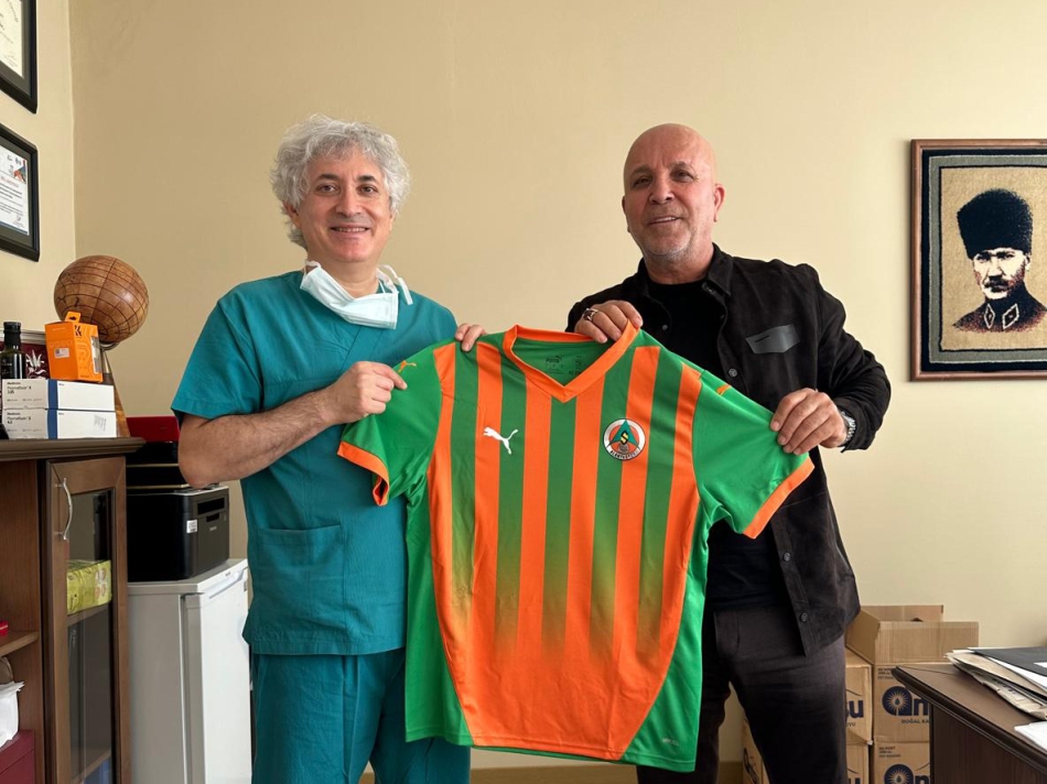 Başkan Hasan Çavuşoğlu ardından Akdeniz Üniversitesi Organ Nakli Enstitüsü Müdürü Prof. Dr. Ömer Özkan’ı da ziyaret ederek forma hediye etti.