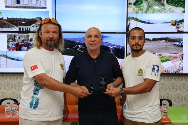 Toplantının ardından Alanya Yamaç Paraşütü ve Spor Turizmini Geliştirme Kooperatifi Başkanı Ergun Ulu ve Başkan Yardımcısı Hamit Şek, Başkanımız Hasan Çavuşoğlu’na 13. Dünya Yamaç Paraşütü Hedef Şampiyonası’nın düzenlenmesine verdiği katkı ve desteklerden dolayı teşekkür plaketi verdi.