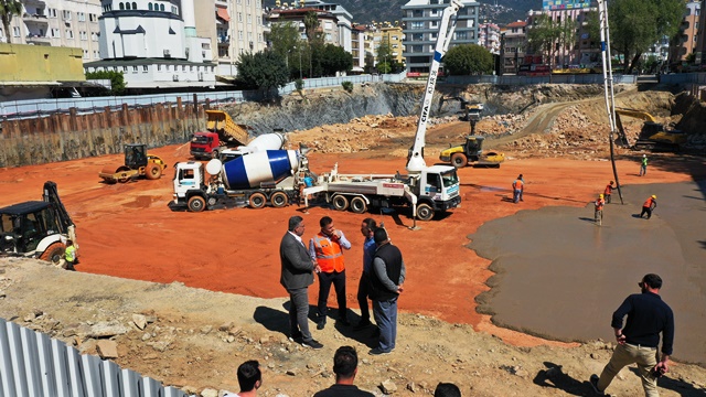Her şeyiyle Alanya’nın ihtiyaçlarını karşılayacak bir kompleks yapı oluşturulacağını belirten Başkan Yücel, “Alanya’nın değişimine ve gelişimine ayak uyduran mega projemizin şu anda grobetonu atılıyor. Hemen arkasından da yalıtımını, demir döşeme işini ve temel betonuna başlıyoruz. İnşallah bu projemizi hedef gösterdiğimiz zamanda hayata geçireceğiz. Sözlerimizi bir bir yerine getirmenin gayreti içindeyiz. Esnafımızı ve bölge halkımızı mağdur etmeden projeyi bitireceğiz. Esnaf ve vatandaşlarımızdan biraz daha sabır istiyorum. Bugüne kadar gösterdikleri sabırdan dolayı teşekkür ediyorum. Şimdiden hayırlı olsun” diye konuştu.