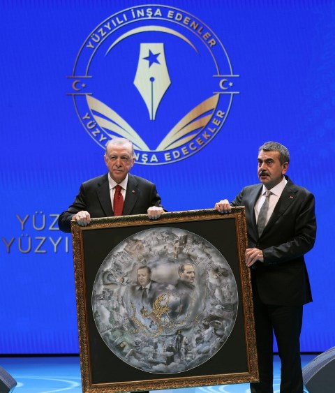 Bütçeden her zaman aslan payının eğitime verdiklerini belirten Cumhurbaşkanı Erdoğan, "Türkiye'nin ekonomik ve siyasi şartları ne olursa olsun eğitim öğretimin ikinci plana itilmesine müsaade etmedik. Hükümetlerimiz döneminde hazırlanan tüm bütçelerde aslan payını daima eğitim öğretime ayırdık. 2002 yılında toplam eğitim öğretim bütçemiz 3 milyar lirayken bugün ne oldu biliyor musunuz? Bugün bu miktar 652 milyar liraya çıkmıştır. Şu an kamuda görev yapan öğretmenlerin yüzde 80'i bizim iktidarlarımız döneminde atanmıştır. Her yıl ortalama 40 bin öğretmen ataması gerçekleştirdik. Üzerinde hassasiyetle durduğumuz bir konu öğretmen maaşları ve özlük hakları ile ilgili iyileştirmelerdir. Dolar bazında 2002 yılında Kasım itibarıyla bir öğretmen, ek ders hariç, 292 dolar kazanırken, bugün dolar bazında bunun yaklaşık 3 katı maaş alıyor” şeklinde konuştu.