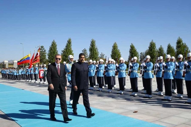 Maduro'nun bulunduğu makam aracını Cumhurbaşkanlığı Külliyesi önündeki caddede karşılayan süvariler, araca protokol kapısına kadar eşlik etti. Cumhurbaşkanı Erdoğan, Maduro'yu Cumhurbaşkanlığı Külliyesi'nin ana giriş kapısında karşıladı. Erdoğan ve Maduro'nun tören alanındaki yerlerini almalarının ardından, 21 pare top atışı eşliğinde iki ülkenin milli marşları çalındı. Maduro, Muhafız Alayı Tören Kıtası'nı selamladı. Törende, tarihte kurulan 16 Türk devletini temsil eden bayraklar ve askerler de yer aldı. İki ülke heyetlerinin takdimi sonrasında Cumhurbaşkanı Erdoğan ve Maduro, merdivenlerde Türkiye ve Venezuela bayrakları önünde tokalaşarak gazetecilere poz verdi. Baş başa görüşmeye geçen Erdoğan ve Maduro, heyetler arası görüşmelerin ardından anlaşmaların imza törenine iştirak edecek ve ortak basın toplantısı düzenleyecek.