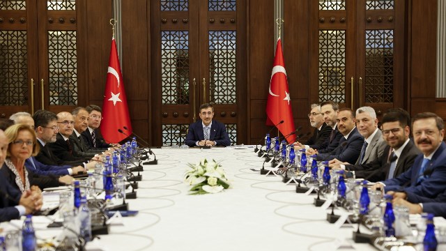 Cumhurbaşkanı Yardımcısı Cevdet Yılmaz’ın başkanlık ettiği Yatırım Ortamını İyileştirme Koordinasyon Kurulu (YOİKK) Toplantısı Cumhurbaşkanlığı Külliyesi’nde gerçekleştirildi. Toplantıya Hazine ve Maliye Bakanı Mehmet Şimşek, Adalet Bakanı Yılmaz Tunç, Çevre, Şehircilik ve İklim Değişikliği Bakanı Mehmet Özhaseki, Tarım ve Orman Bakanı İbrahim Yumaklı, Ulaştırma ve Altyapı Bakanı Abdulkadir Uraloğlu, Ticaret Bakanı Ömer Bolat, Sanayi ve Teknoloji Bakanı Mehmet Fatih Kacır, Enerji ve Tabii Kaynaklar Bakanı Alparslan Bayraktar, Çalışma ve Sosyal Güvenlik Bakanı Vedat Işıkhan ve sivil toplum kuruluşları katıldı. Yaklaşık 4 saat süren toplantı sonrası Cumhurbaşkanı Yardımcısı Yılmaz açıklamalarda bulundu.