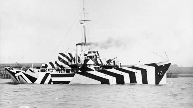 Aynı savaş öncesinde Londra'da çalışan ressam Norman Wilkinson ise gemileri düşman torpidosundan koruyacak "göz kamaştırıcı" kamuflaj üzerinde çalışmıştı.