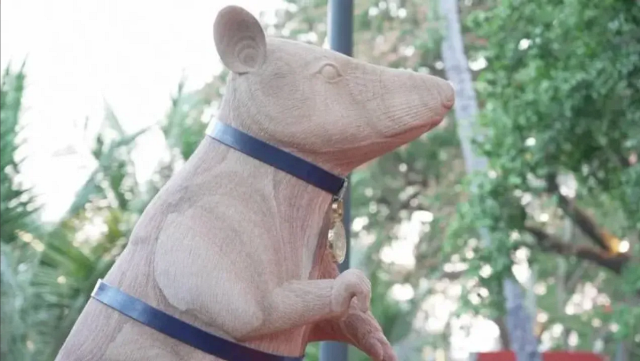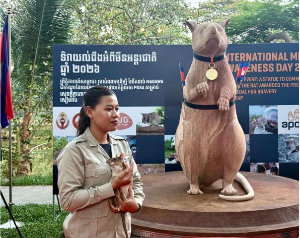 Kamboçya’da, kahramanlığı için altın madalya ile ödüllendirilen ünlü mayın bulucu fare Magava adına bir heykel yapıldı.