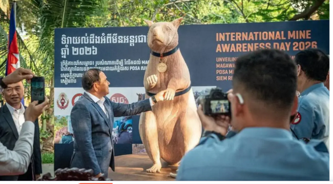 Kamboçya’da, kahraman mayın temizleyici fare Magawa için heykel dikildi. Altın madalya sahibi Magawa, 2016-2021 yılları arasında 100’den fazla mayın ve patlayıcıyı tespit etti. Dünyada bir fare için yapılan ilk heykel olan anıt, 4 Nisan Uluslararası Mayın Farkındalık Günü’nde açıldı.