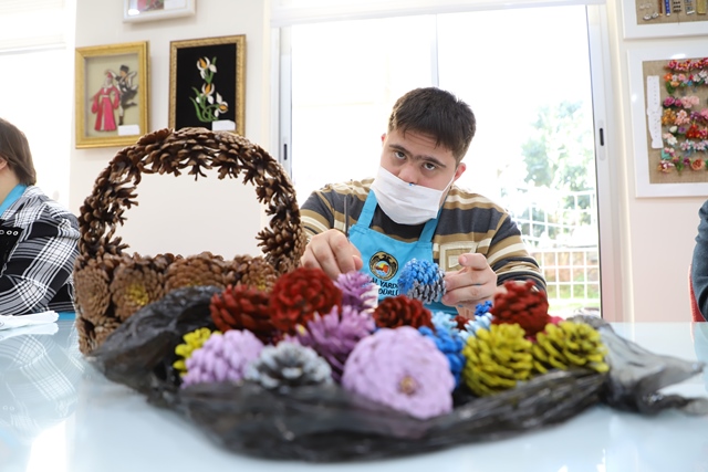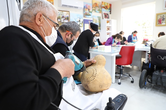 Alanya Belediyesi engelli bireylere sağlık, eğitim, sosyal vb. birçok alanda hizmet verirken Engelsiz Sanat Atölyesiyle üretkenlik noktasında büyük adımlar atıyor. 2 bin engelli bireyin kaydının bulunduğu Engelli Koordinasyon Merkezi içerisinde bağımsız bir binaya taşınan Engelsiz Sanat Atölyesi’nde engelli birey ve yakınları el sanatları öğretmenlerinin eşliğinde yağlı boya, filografi, ipek kozası, çini, çömlek, ahşap boyama, ebru sanatı gibi birçok alanda da kurslar almaya devam ediyor.