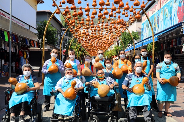 Özellikle farkındalık oluşturmak adına çalışmalar yapılan Engelsiz Sanat Atölyesi’nde farklı gruplardaki engellilerin çalışmaları sonucu Alanya’nın en güzel noktalarından birine yöresel ürünlerden olan kabak süsleme sanatı gerçekleştirildi. 700 kabağın süslenmesiyle başlanan proje 1600 ürünle devam ederek Kabak Sokağı’nı ortaya çıkardı. Bu sayede sokak ışıl ışıl aydınlanarak Alanya’nın hem yerli halkı hem de dışardan gelen misafirleri için cazibe noktası haline gelirken engelli bireylerin başarısını ve kentin estetiğine olan katkısını göstermiş oldu.