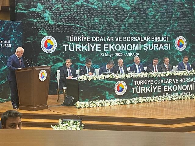 Cumhurbaşkanı Yardımcısı Cevdet Yılmaz'ın koordinesinde, Türkiye Odalar ve Borsalar Birliği (TOBB) Başkanımız Rifat Hisarcıklıoğlu'nun ev sahipliğinde gerçekleştirilen TOBB Türkiye Ekonomi Şurası'na Oda ve Borfsa başkanlarının yanı sıra; Hazine ve Maliye Bakanı Mehmet Şimşek, Sanayi ve Teknoloji Bakanımız Mehmet Fatih Kacır, Çalışma ve Sosyal Güvenlik Bakanı Vedat Işıkhan, Tarım ve Orman Bakanı İbrahim Yumaklı ve Ticaret Bakanı Ömer Bolat katıldı.