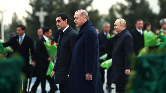 Erdoğan, Aşkabat'ta, Rusya Devlet Başkanı Vladimir Putin, Kırgızistan Cumhurbaşkanı Sadır Caparov ve Pakistan Başbakanı Şahbaz Şerif ile bir araya geldi.