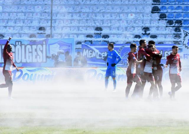 Erzurum'da -7 derecede oynanan maçta alttan ısıtma açıldı, saha saunaya döndü