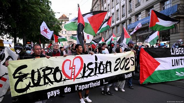 Yarışma öncesi Basel’de binlerce kişi “soykırımcı İsrail yarışmada olamaz” diyerek protesto gösterileri düzenlemiş, Eurovision’un boykot edilmesi çağrıları yapılmıştı.