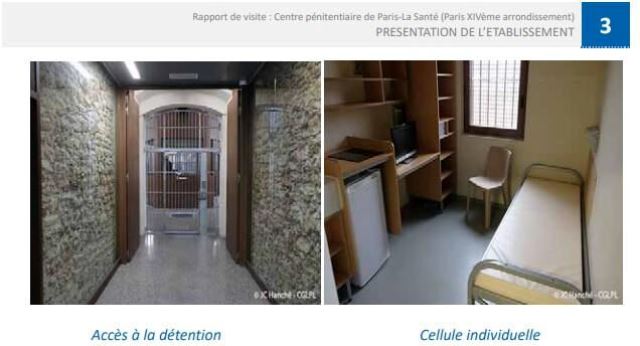 Eski Fransa Cumhurbaşkanı Nicolas Sarkozy, cezaevine girişinde diğer tutuklularla aynı standart işlemlerden geçirildi. İçeri alınmadan önce kimlik tespiti yapıldı, parmak izleri alındı, fotoğrafı çekildi ve tam beden araması gerçekleştirildi. Ardından kendisine cezaevi kayıt numarası verildi. Sarkozy'nin cezaevi süreci boyunca herhangi bir ayrıcalık talebinde bulunmadığı ve tüm prosedürlere itirazsız uyduğu bildirildi. Sarkozy'nin pencereli tek kişilik hücrede yanına yalnızca Alexandre Dumas imzalı "Monte Cristo Kontu" ve Jean-Christian Petitfils tarafından kaleme alınan "Jesus" kitaplarını aldığı öğrenildi.
