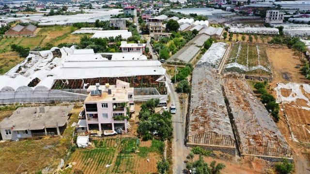 Gazipaşa’da dün akşam saatlerinde etkili olup ev ve seralara büyük zarar veren hortum felaketinin boyutu gündüz saatlerinde ortaya çıktı. Dron kamerasına yansıyan görüntülerde onlarca cam ve naylon seraların yerle bir olduğu görüldü.
