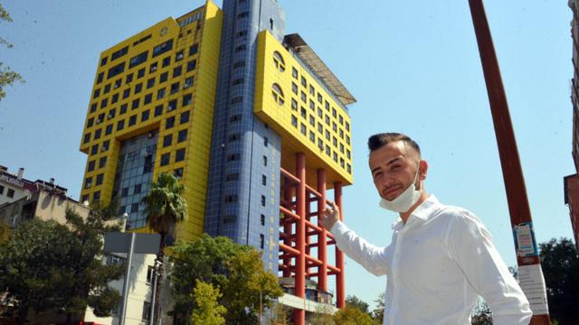 Google’da ‘dünyanın en saçma binası’ olarak arama yapıldığında ilk sırada yer alan Kahramanmaraş’taki yarısı kullanılmayan sarı kırmızı mavi renkli bina, yüksek maliyet nedeniyle yıkılmadığı için kentin silüetini de bozmaya devam ediyor.