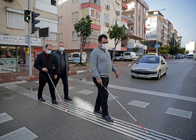 Antalya Büyükşehir Belediyesi görme engelli bireylerin karşıdan karşıya geçmelerini güvenli ve kolay hale getirmek için trafik ışıklarında Akustik Sesli Yaya Uyarı Cihazı sistemini hayata geçirdi. Uygulama ilk olarak Beyaz Baston Görme Engelliler Derneği’nin bulunduğu Cumhuriyet Mahallesi’nde kuruldu.