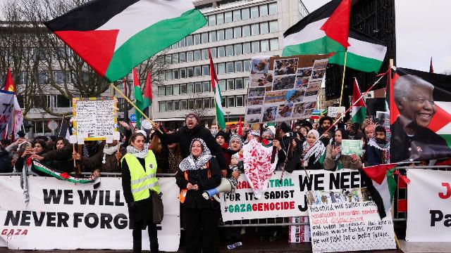 Uluslararası Adalet Divanı önünde Gazze'ye destek gösterisi