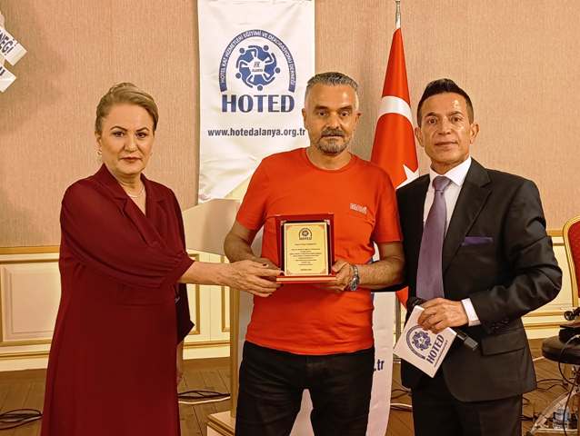 Bir de diğer taraftan Yeni yara bandı diye bir tabir kullandı. Bunu bölge bölge kendi içimizde değerlendirerek halledebileceğimiz bir sorun olarak görüyorum. Çünkü verim alınamıyor. İnsanların izin gününde dahi çalışması sürekli verimliliği ya da sürdürülebilirliği düşürüyor. Burada saatlik çalışma modeline geçebiliriz. Aslında bu çalışanların da ekonomik sorunlarını belirli bir anlamda çözebilecek bir yaklaşımdır. İdarecilerimiz, housekeeperlarımız, mutfak şeflerimiz, aşçıbaşılarımız, servis müdürlerimiz buna kafa yormak durumda. Bizler de bunları destekleyeceğiz. Geliri artırarak çalışalım. Çünkü Türkiye’nin içinde bulunduğu ekonomik koşullar ve tesisler anlamında söylüyorum, bizim yaşadığımız koşullar bu işin küçük ve orta ölçeklilerde sürdürülebilir olmasının dışına çıkmaya başladı. Eğer bu böyle devam ederse ülke, bölge, çalışanlar, küçük ve orta ölçekli tesisler olarak çok daha büyük problemler yaşayacağız. Bu sayıları ifade ediyor, 100 milyonu hedefliyoruz ama bu küçük ve orta ölçekli tesislere de ihtiyaç var. Alanya’da 550’nin üzerinde tesis var. Bu sektör emek yoğun bir sektör. Sizler olmazsanız biz, bizler olmazsak siz yoksunuz” dedi. Sili’nin konuşmasının ardından HOTED’in faaliyetlerine katkı sağlayanlara plaket takdim edildi. HOTED kursiyelerine de sertifikalarının verilmesinin ardından balo şarkılar eşliğinde eğlence ile devam etti. - Erkan Uysal