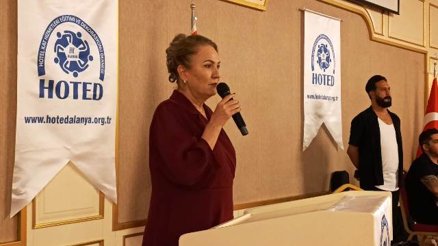 Daha sonra konuşan Alanya Belediye Başkan Yardımcısı Servet Ünlü de, “ALTSO’da genel sekreter olarak görev yaptığım dönemde en aktif çalıştığımız derneklerden biri HOTED. O dönemde ciddi olarak kat hizmetleri mesleğine de Alanya’da standart getirilmesi için çok ciddi çabalar sarf ettik. Burada bu mesleğin çıtasını yükselten dernek HOTED. Sadece Alanya’da değil, Türkiye’de kat hizmetlerini onurlu ve itibarlı bir meslek olarak yücelten bir dernek. Böyle bir derneğin mensubu olduğunuz için gurur duymalısınız” ifadelerini kullandı.