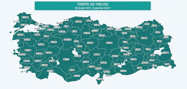 Koronavirüsle mücadelede Türkiye'de 14 Ocak günü başlatılan aşı uygulaması kapsamında 6 Şubat tarihi verilerine göre en az 2 milyon 604 bin kişi ilk doz aşıyı oldu. Bu ülke nüfusunun yüzde 3'den fazlasına denk geliyor..