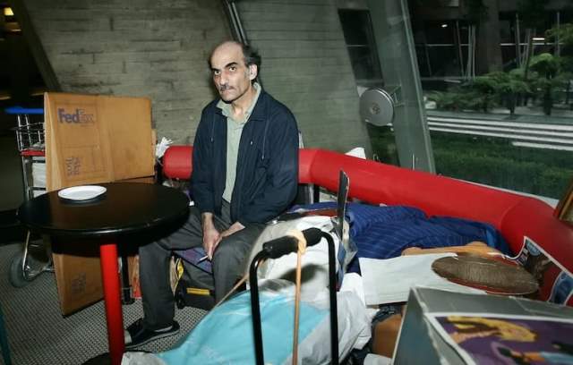 1988-2006 yılları arasında Roissy-Charles-de-Gaulle Havalimanı'nda "yasal bir belirsizlik" içinde yaşayan İranlı, burada kaldığı dönemde kırmızı bir bankta uyudu, personel tesislerinde duş aldı ve havaalanı çalışanlarıyla arkadaş oldu.