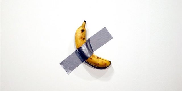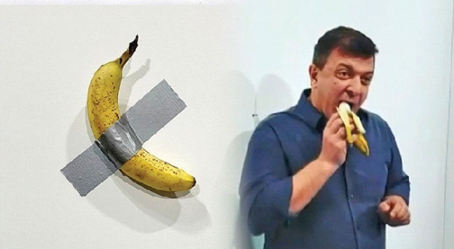 İtalyan heykel sanatçısı Maurizio Cattelan'ın duvara bantlanmış muzdan oluşan ve 120 bin dolara satılan eserindeki muzu, başka bir sanatçının duvardan kopararak yemesi üzerine eseri polis korumaya başladı.