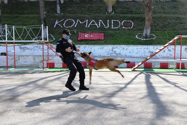Zonguldak İl Jandarma Komutanlığı envanterinde yer alan bomba arama, narkotik, iz takip ve kadavra köpekleri zorlu eğitimlerden geçerek adeta komando gibi eğitiliyor. Uzman eğiticileri eşliğinde eğitim sahasında çalışan köpekler, performanslarıyla göz dolduruyor.
