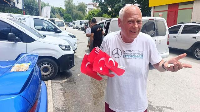 Manavgat’ta semt pazarında alışveriş yapan Alman turist, Türk bayrağı almak istediği şahsın kapkaçına uğradı. Alman turist, 300 Euro’sunu alarak kaçan şahsın peşinden dakikalarca koştu. Durumu fark eden bir esnaf da olaya dahil oldu ve kapkaç şüphelisini kovalamaca sonucu yakaladı.