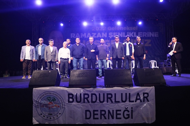 Ramazan Etkinliklerinin 5’inci gününde Antalya Büyükşehir Belediyesi ev sahipliğinde Burdurlular Derneği’nin katkılarıyla Burdurlular Gecesi düzenlendi. Burdur’un sevilen sanatçısı Fatih Burdurlu birbirinden güzel Teke Yöresi ezgilerini seslendirdi. Antalya’da yaşayan Burdurluları ve Antalyalıları coşturan sanatçı alanı dolduran vatandaşlarla sahnede özçekim yaptı.