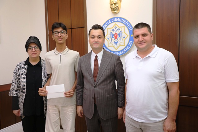 Alanya Kaymakamı Şakir Öner Öztürk, Liselere Geçiş Sınavı'nda (LGS) tüm soruları doğru yanıtlayarak 500 tam puanla Türkiye birincisi olan Alanya Mehmet Akif Ersoy Ortaokulu öğrencisi Aydoğan Tuna Akman, Şehit Ömer Halisdemir Ortaokulu öğrencileri Azra Özdemir ve Yağız Kağan Bilge, Özel Alanya Oba Bahçeşehir Koleji Ortaokulu öğrencisi Belgüzar Duru Deniz ve Milli Eğitim Vakfı Güleç Demirel Ortaokulu öğrencisi Mohammed Musawır Delzada'yı makamında ağırladı. İlçe Milli Eğitim Müdürü Yusuf Yılmaz, okul müdürleri ve ailelerin de eşlik ettiği ziyarette öğrencilerle tek tek sohbet eden Kaymakam Öztürk lise tercihleri ve gelecek hedefleri hakkında bilgiler aldı. Ziyaret sonunda Öztürk tarafından öğrencilere hediye çeki takdim edildi. Kaymakam Öztürk, “Alanya'mızın adını Türkiye'nin zirvesine yazdıran pırıl pırıl evlatlarımızla gurur duyuyoruz. Bu olağanüstü başarıda emeği geçen başta sevgili öğrencilerimiz olmak üzere, onlara her an destek olan değerli ailelerini ve fedakâr öğretmenlerimiz ile okul yöneticilerimizi gönülden tebrik ediyorum. Gençlerimizin yolu, bahtı açık olsun" dedi. – Alanya Kaymakamlığı / Bülten