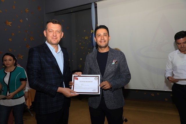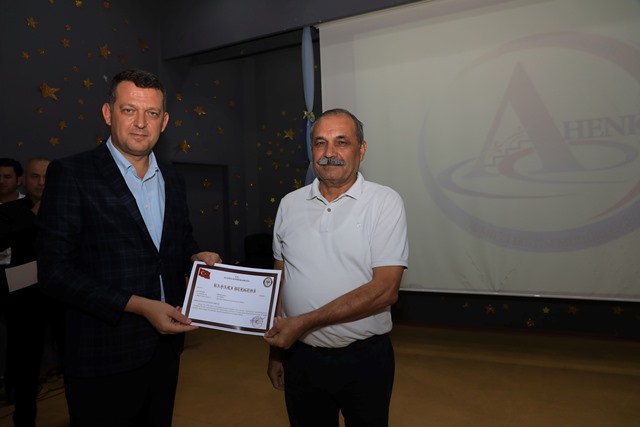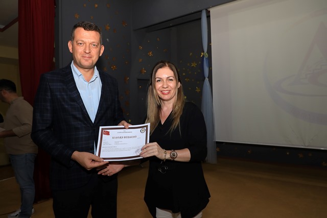 Konuşmanın ardından Kaymakam Ürkmezer tarafından Öğretmen, İdareci ve Milli Eğitim personellerine başarı belgeleri verildi.