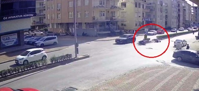 Manavgat’ın Bahçelievler Mahallesi, Çetin Emeç Caddesi’nde meydana gelen trafik kazasında Gençlik Merkezi istikametine seyir halindeki Ferhat Y.’nin kullandığı 07 BHF 267 plakalı motosiklet, 5036 Sokağa dönmekte olan Taylan T.’nin kullandığı 07 AFU 600 plakalı otomobile çarptı. Güvenlik kamerasına saniye saniyesine yansıyan kazada, çarpmanın şiddetiyle yola savrularak sürüklenen motosiklet sürücüsü yaralandı. Başındaki kask sayesinde kazayı ucuz atlatan motosiklet sürücüsü 112 Acil Sağlık ekibinin olay yerindeki müdahalesinin ardından ambulansla hastaneye kaldırıldı. – İHA