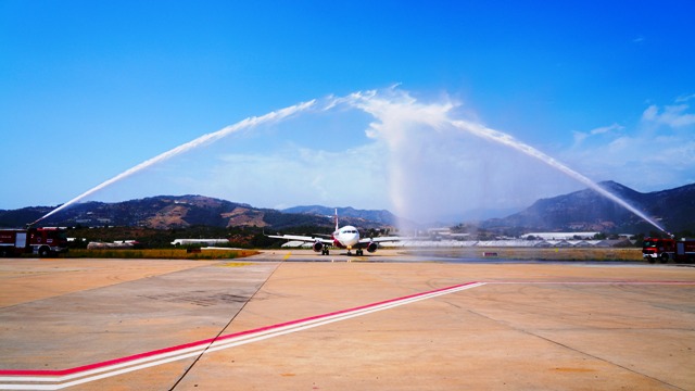 İLK UÇAK COŞKUYLA KARŞILANDI