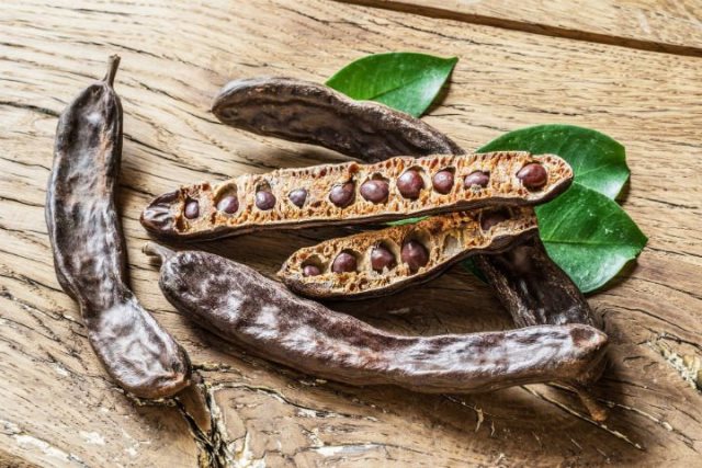 Keçiboynuzu ilk zamanlar yeşil ama olgunlaştığında kahverengileşmektedir. Ağaç Meyvesinin mezokarpı (orta tabakası), taze iken yumuşak ve tatlıdır. Her bir meyvenin (bakla) içerisinde on beş kadar sert kabuklu yassı tohumlar bulunur. Tohumlar Trigosol adı verilen bir madde içerir.